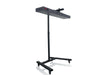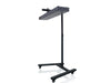 The horizontal mobile stand facilitates the creation of larger, customized full-body setups with PRO series panels. Mounting brackets are included to attach to the back of the panels, allowing them to hang horizontally on the stand. The base of the stand is equipped with wheels for convenient mobility, and the wheels can be locked in place. The height is adjustable, ranging from approximately 35 inches to 52 inches.